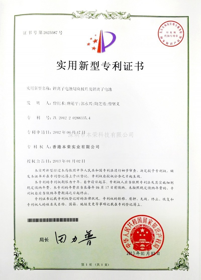 本荣证书8